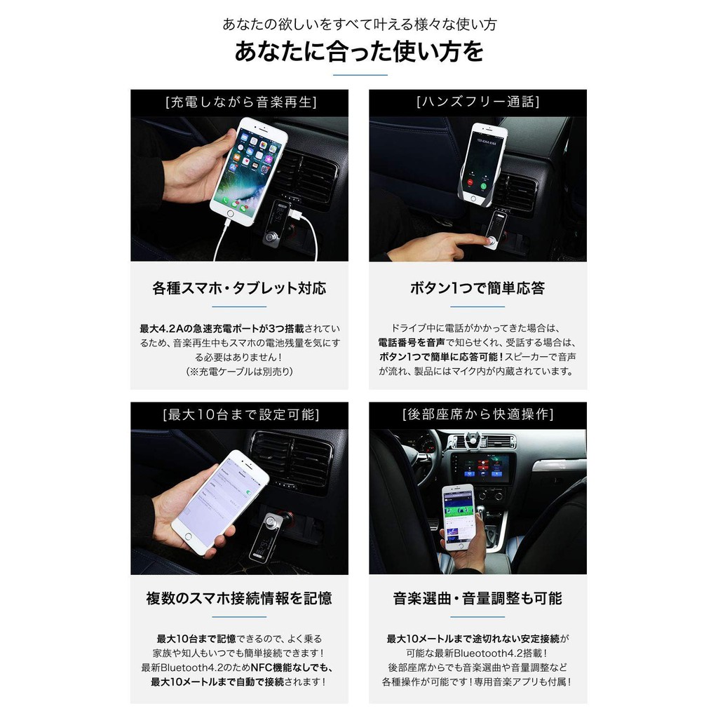 Amazon Japan Ave ジャパンアベニュー 意匠取得 Fmトランスミッター Bluetooth 5 0 高音質 Atsチップ搭載 Iphone 急速充電 Usb 3口 Aux In Out 2way 有線接続 12 24v カーチャージャー シガーソケット Smartbc アプリ 無償提供 Ja996 メーカー1年保証 Fm